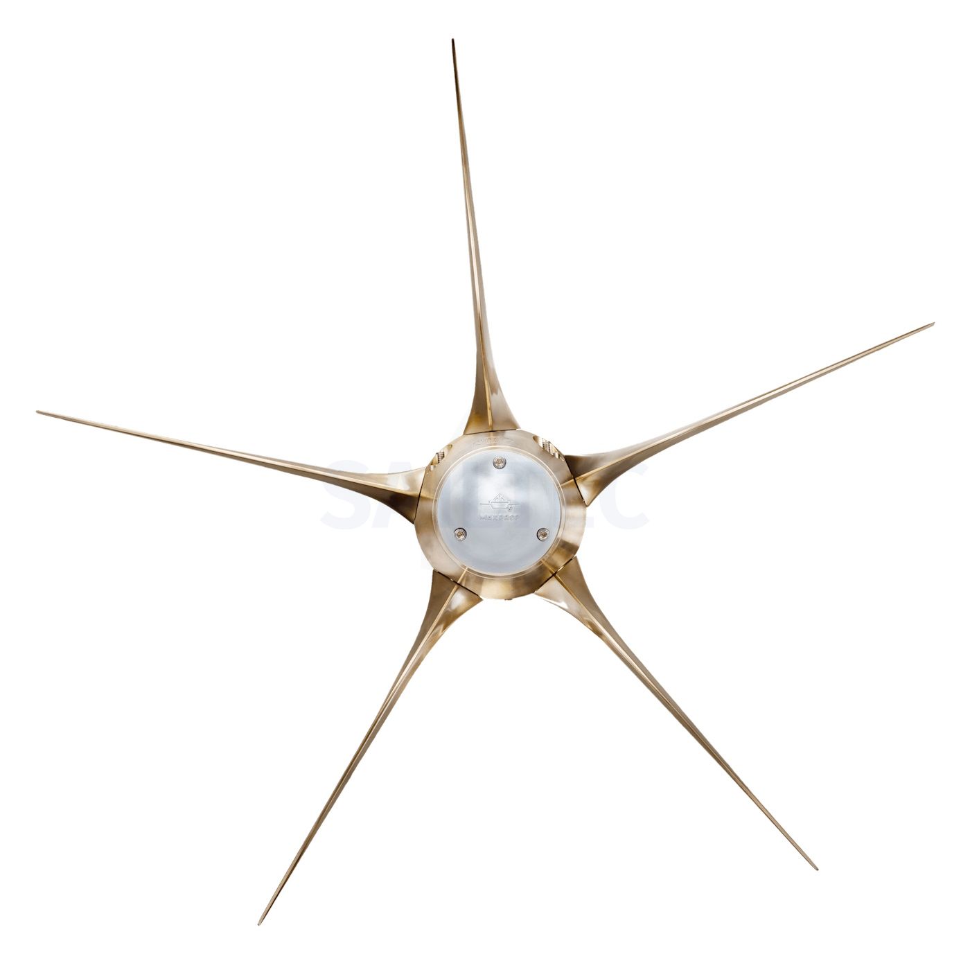 • The Max-Prop Whisper uses five blades to provide quiet operation and impressive thrust. Especially against heavy wind ans seas, the fifth blade will maintain boat speed on a heavy vessel. Also, the fifth blade provides am smoother operation quieting down propeller noise on larger applications.