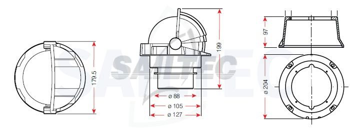 • Unique ‘Lewmar’ binnacle, white: Diameter 204mm, height 97mm